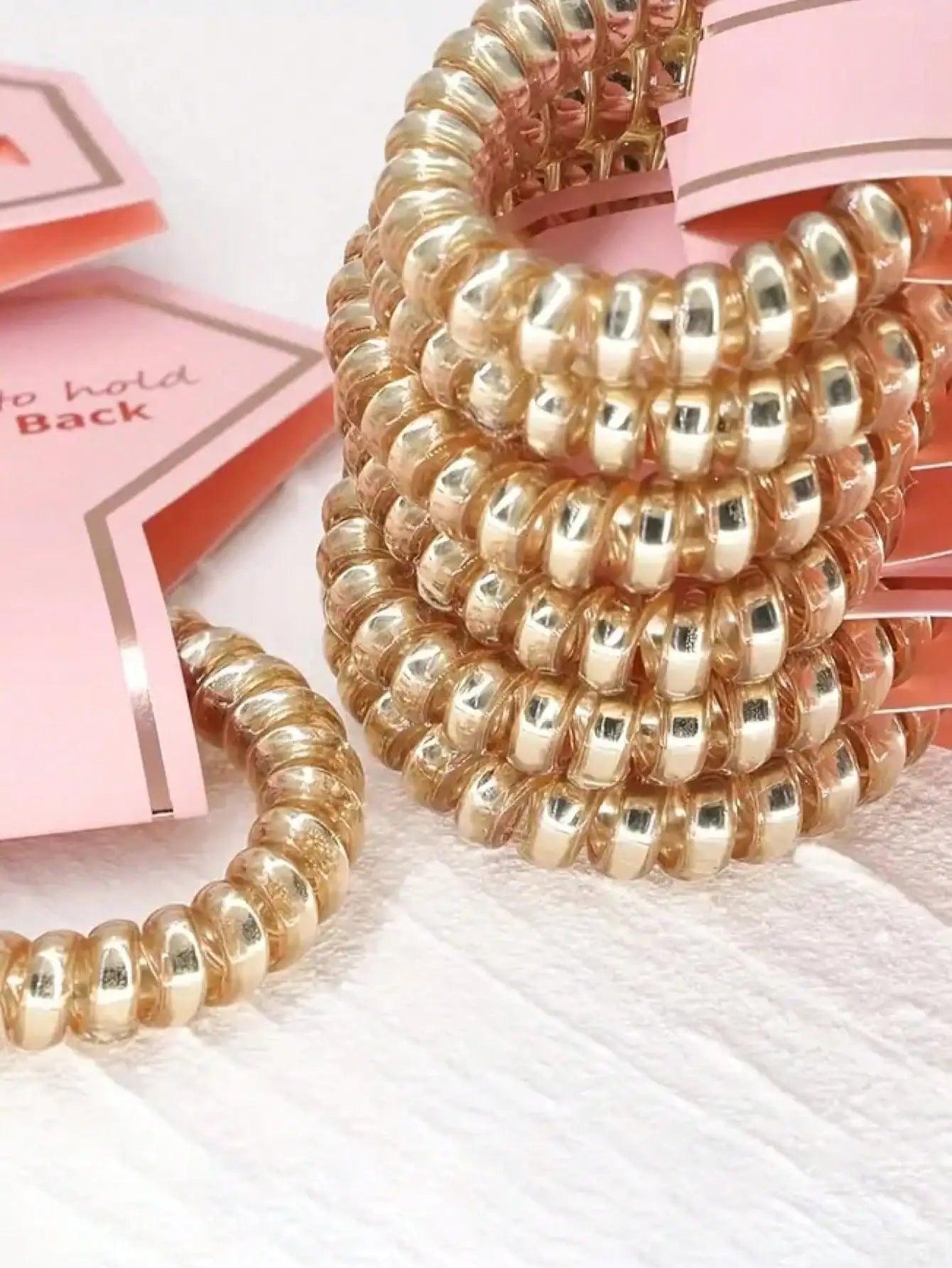 - Set includes 8 spiral hair ties with crystal ring-shaped accents.