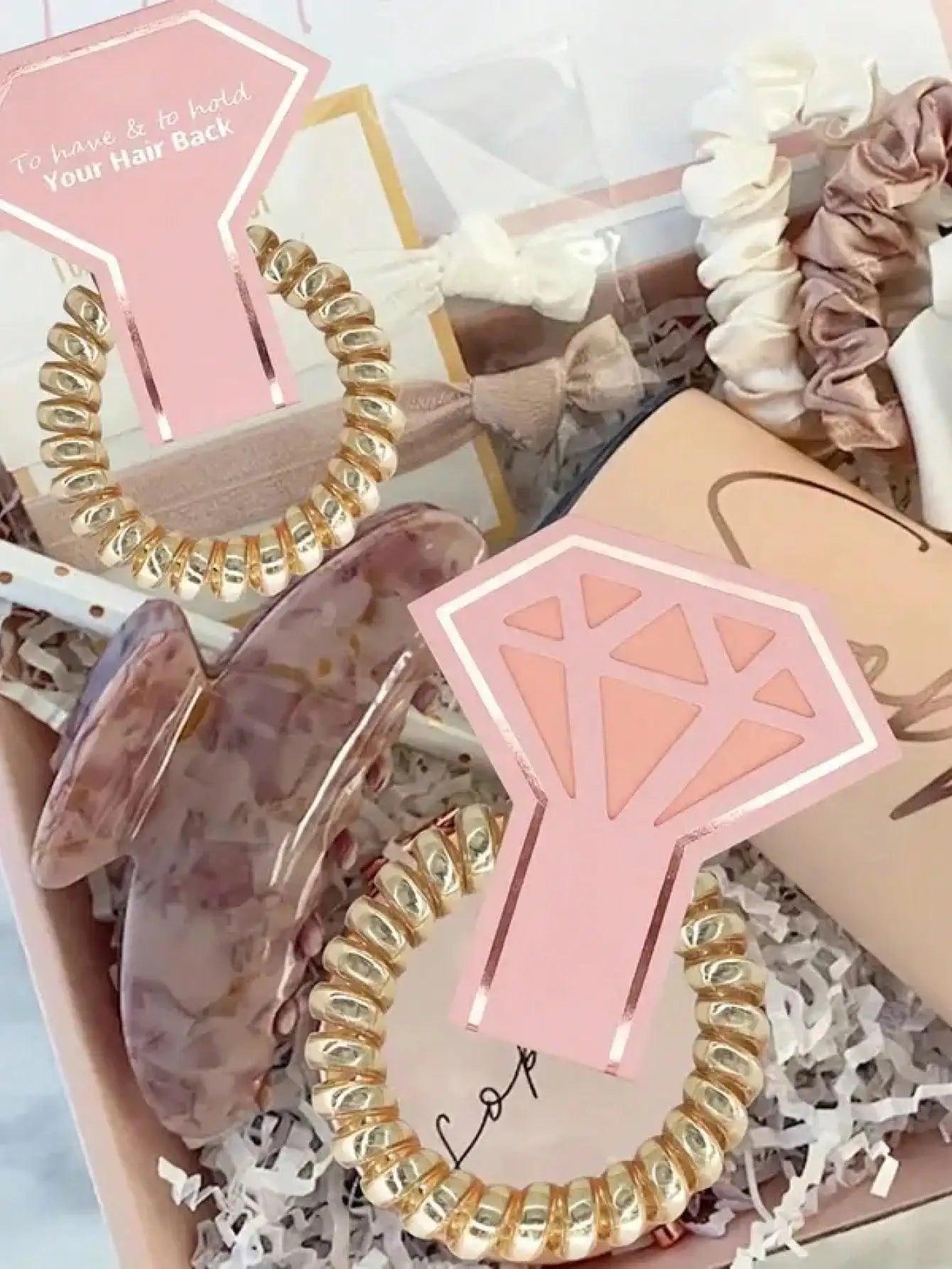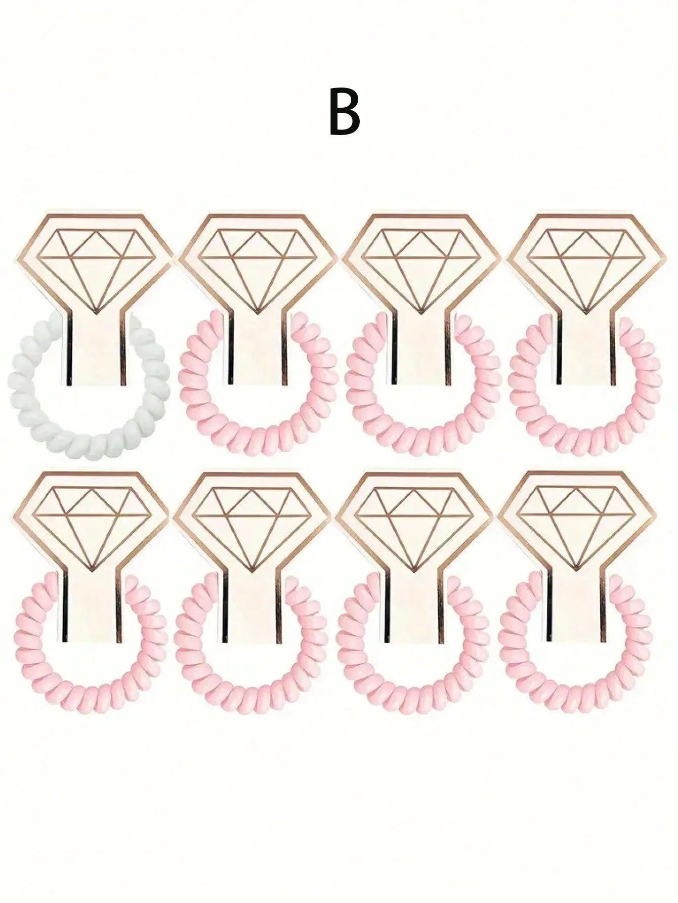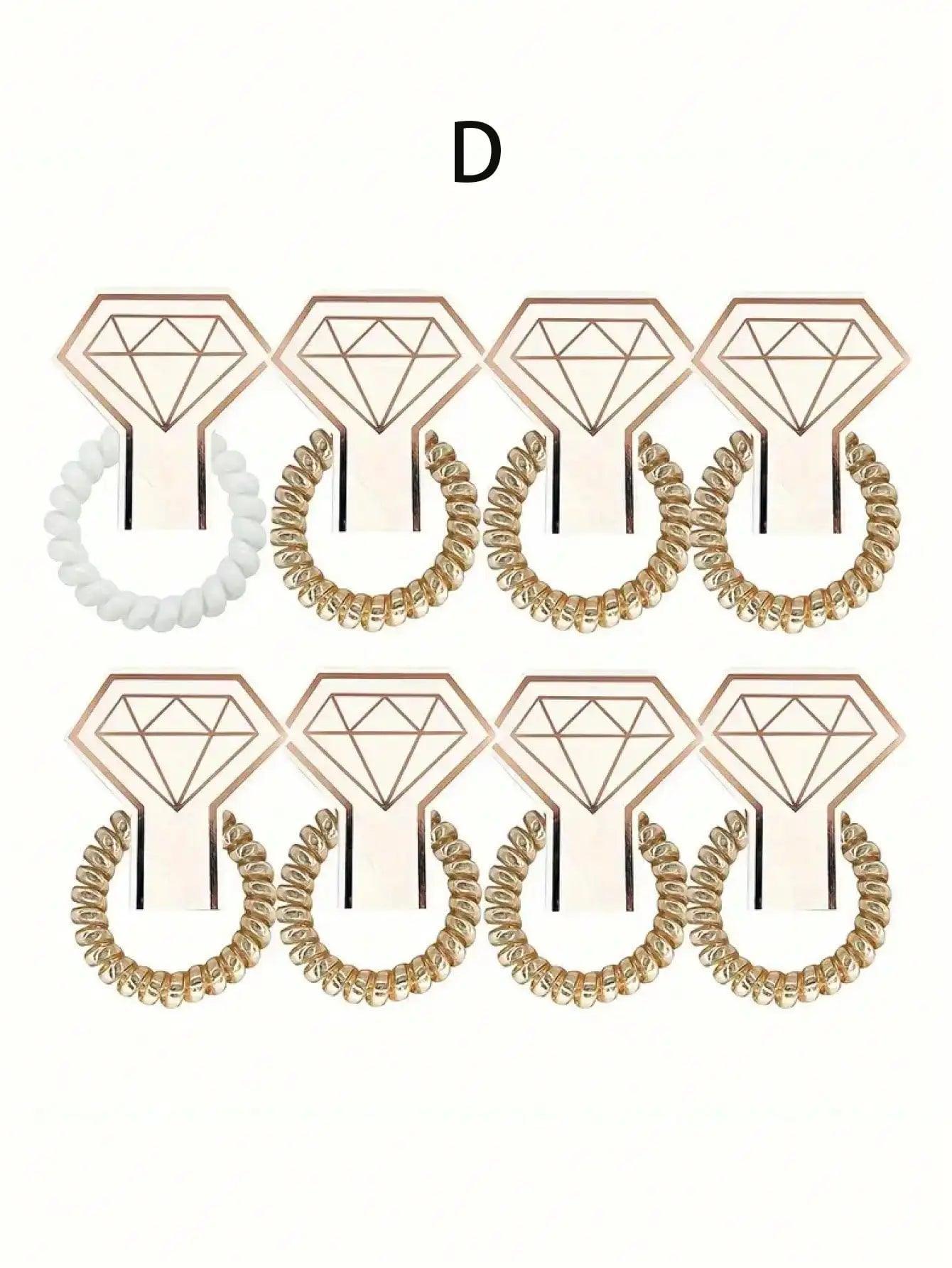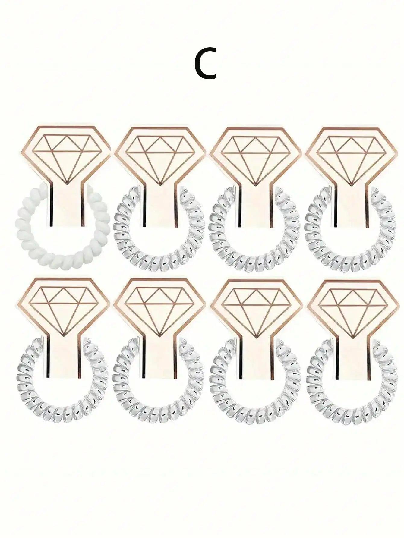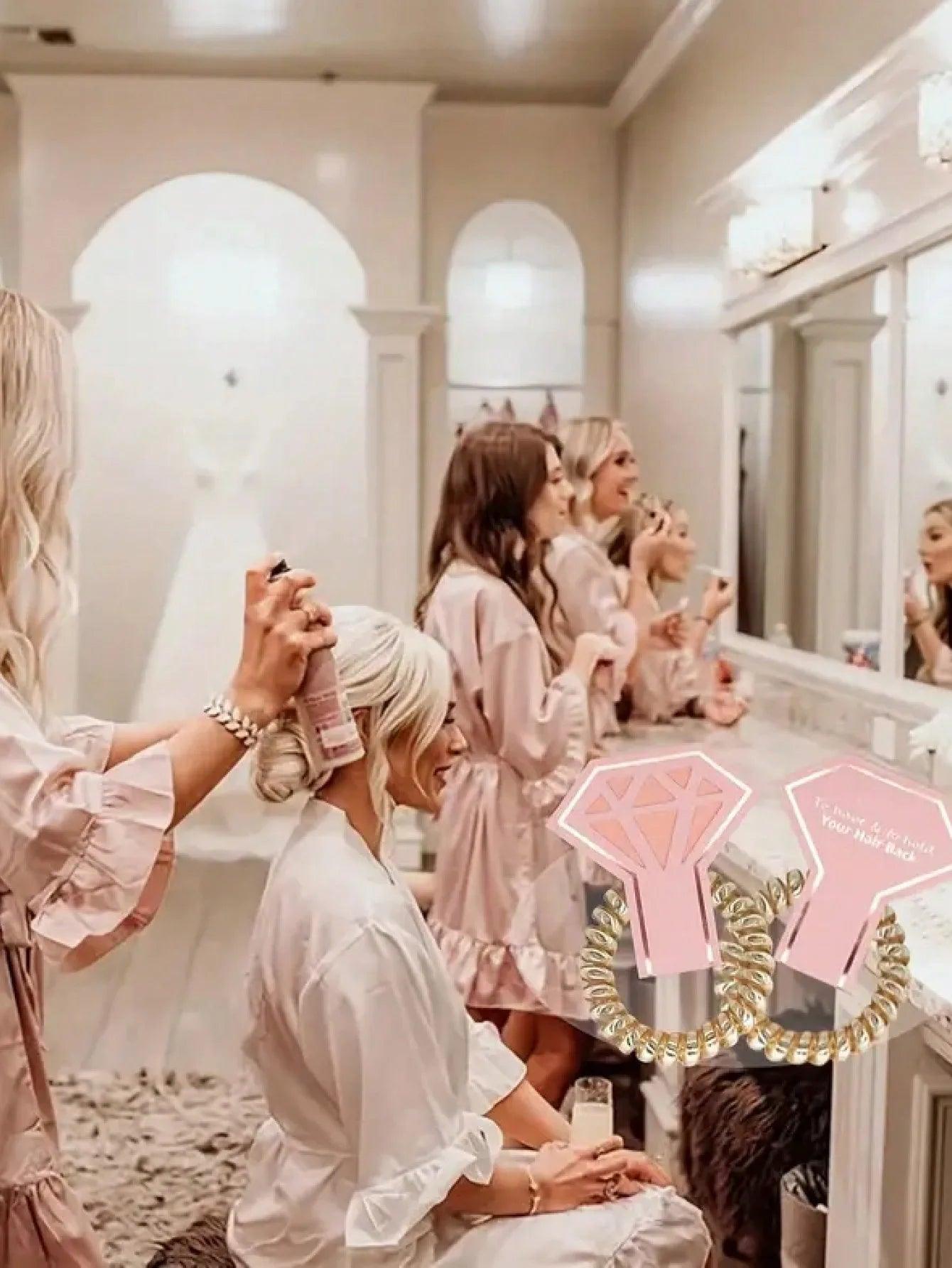 The Spiral Hair Tie Ring is the perfect accessory for bridal showers, bachelorette parties, and wedding festivities. These crystal ring-shaped hair ties add a fun and elegant touch to any celebration. With a spiral design that prevents hair damage and ensures a secure hold, these hair ties are both functional and stylish. Presented on a beautifully designed card, this set makes a great gift for brides and bridesmaids, adding a unique and memorable touch to your wedding preparations.
