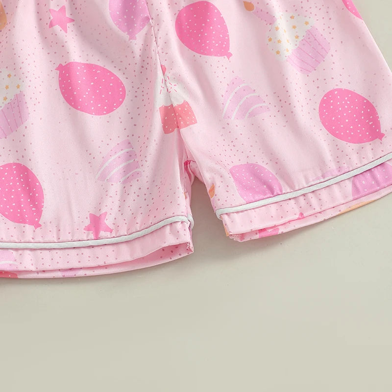 Make bedtime extra fun with this birthday girl pajama set! Featuring a playful cake and balloon print, the short sleeve top pairs perfectly with cozy bottoms for all-night comfort. Designed for little girls who love to celebrate, this set adds a cheerful touch to every night's sleep.