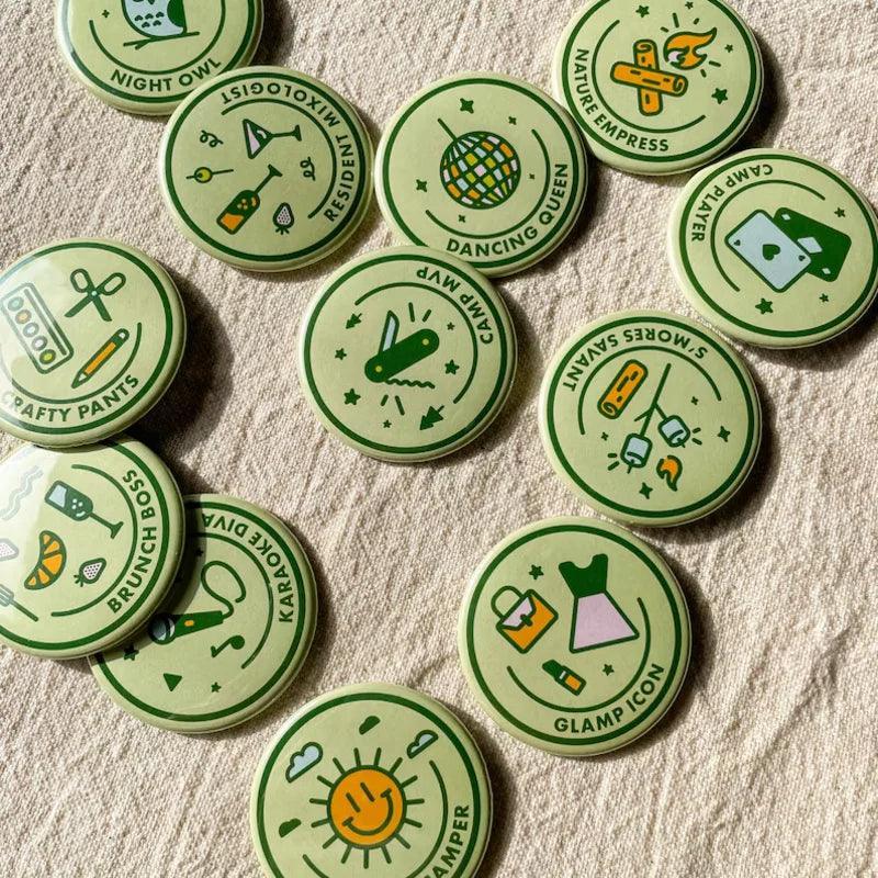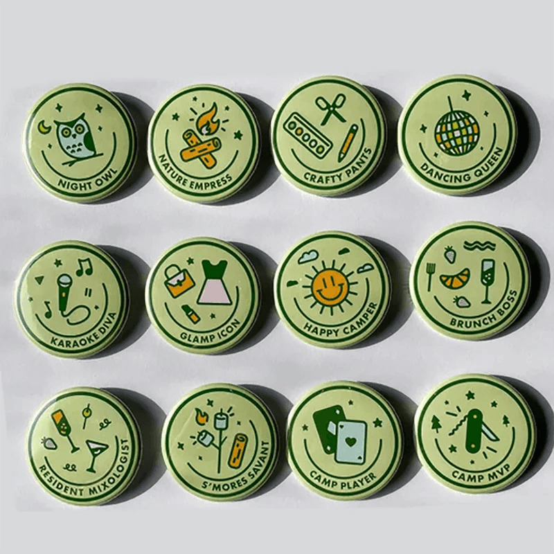 - Set of 12 camping-inspired merit badges for a fun and unique twist.