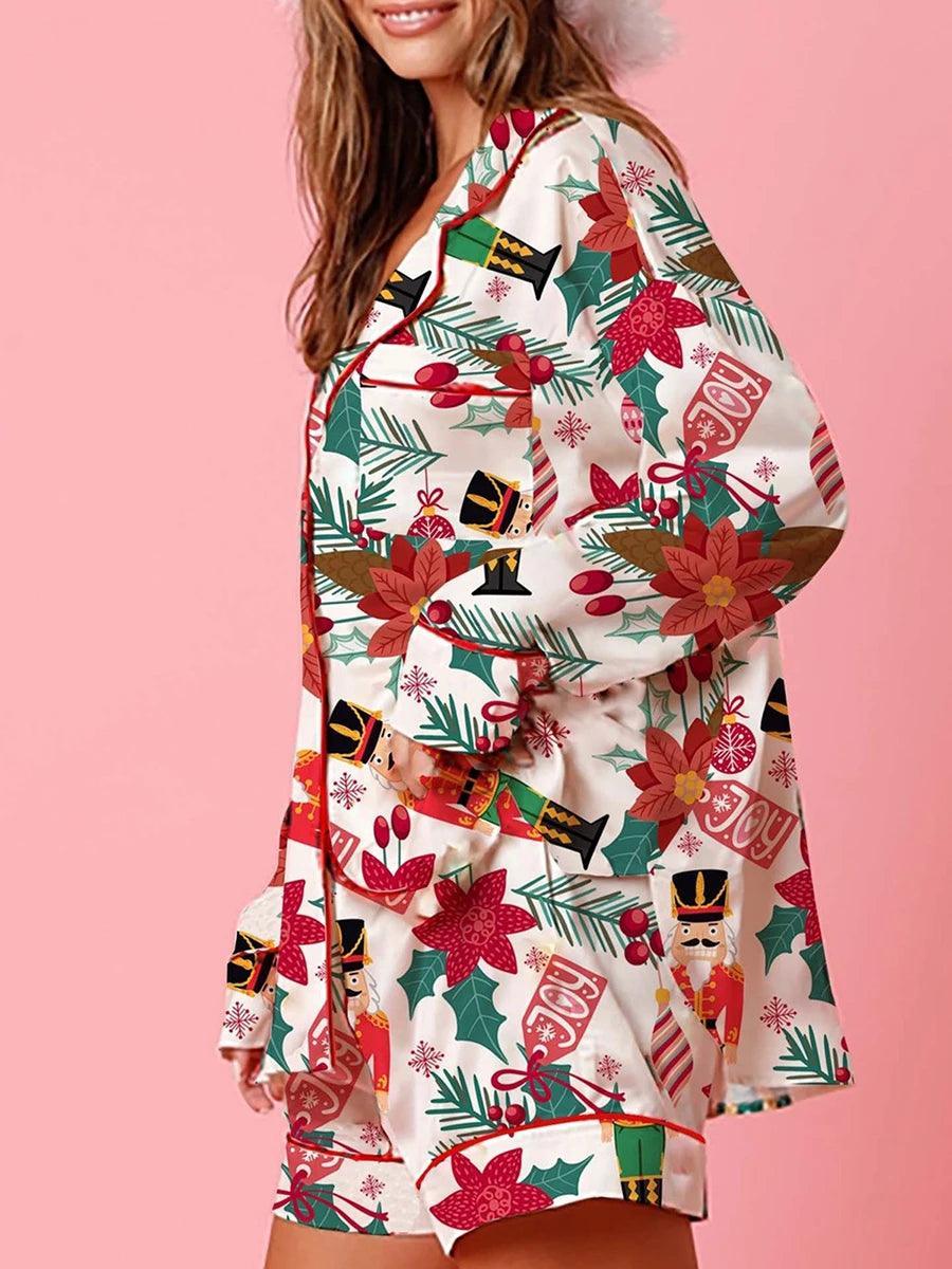 - Matching top and bottom with festive reindeer and Christmas tree prints