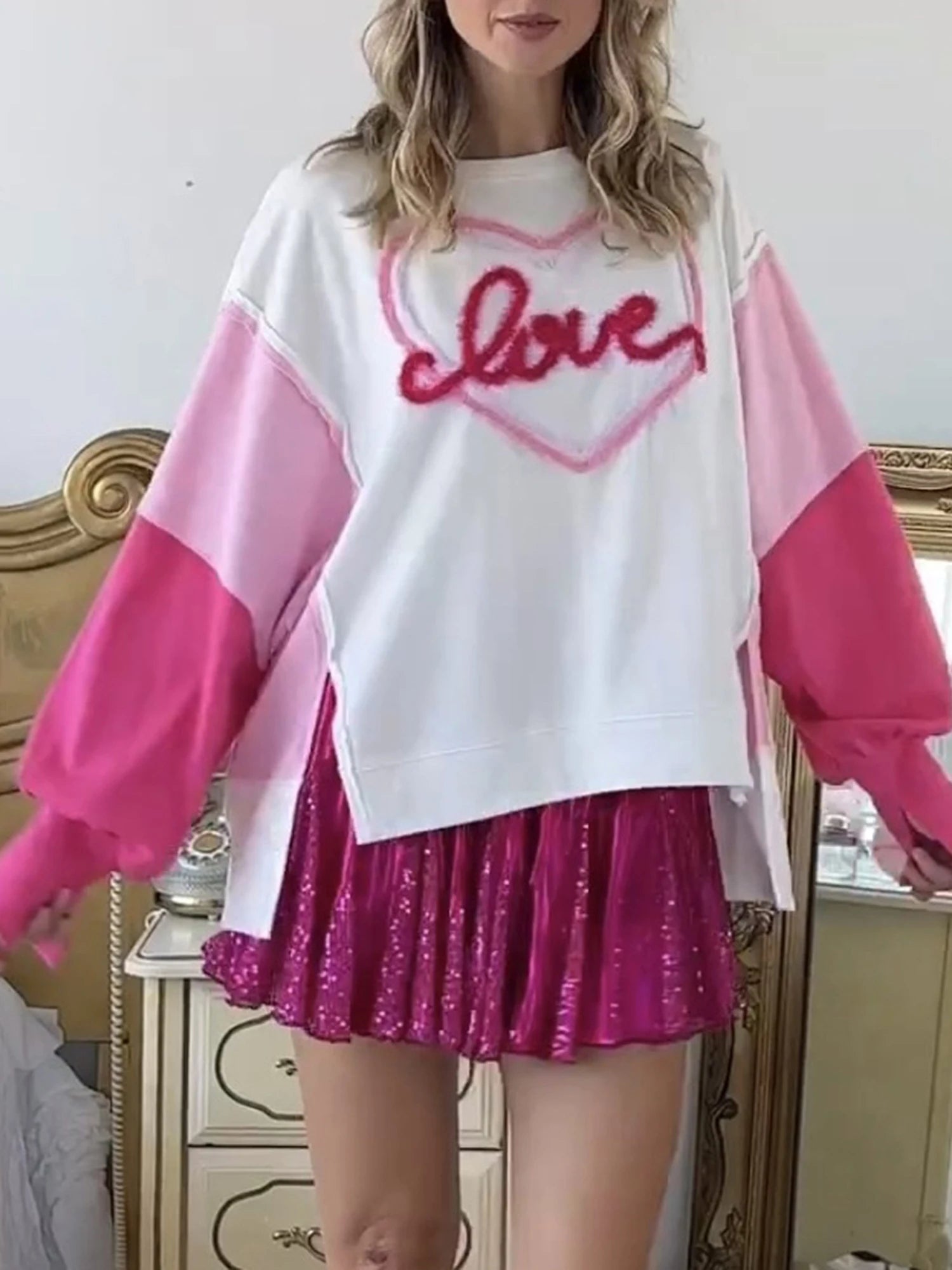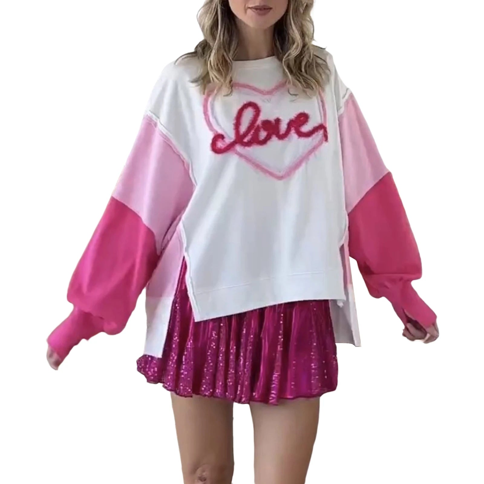 Celebrate love in cozy comfort with this charming crew sweater, perfect for Valentine's Day and beyond. Featuring a relaxed loose fit, long sleeves, and a classic round neckline, it's designed for effortless style. The split hem adds a modern touch, while delicate heart embroidery brings romantic flair to your everyday look. Whether you're treating yourself or gifting it to someone special, this sweatshirt pairs beautifully with jeans or leggings for a laid-back vibe that says "forever in love" without trying too hard.