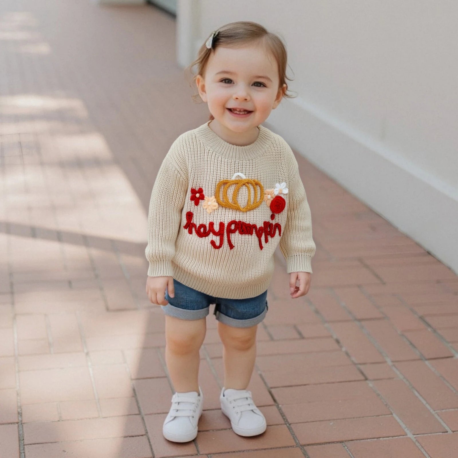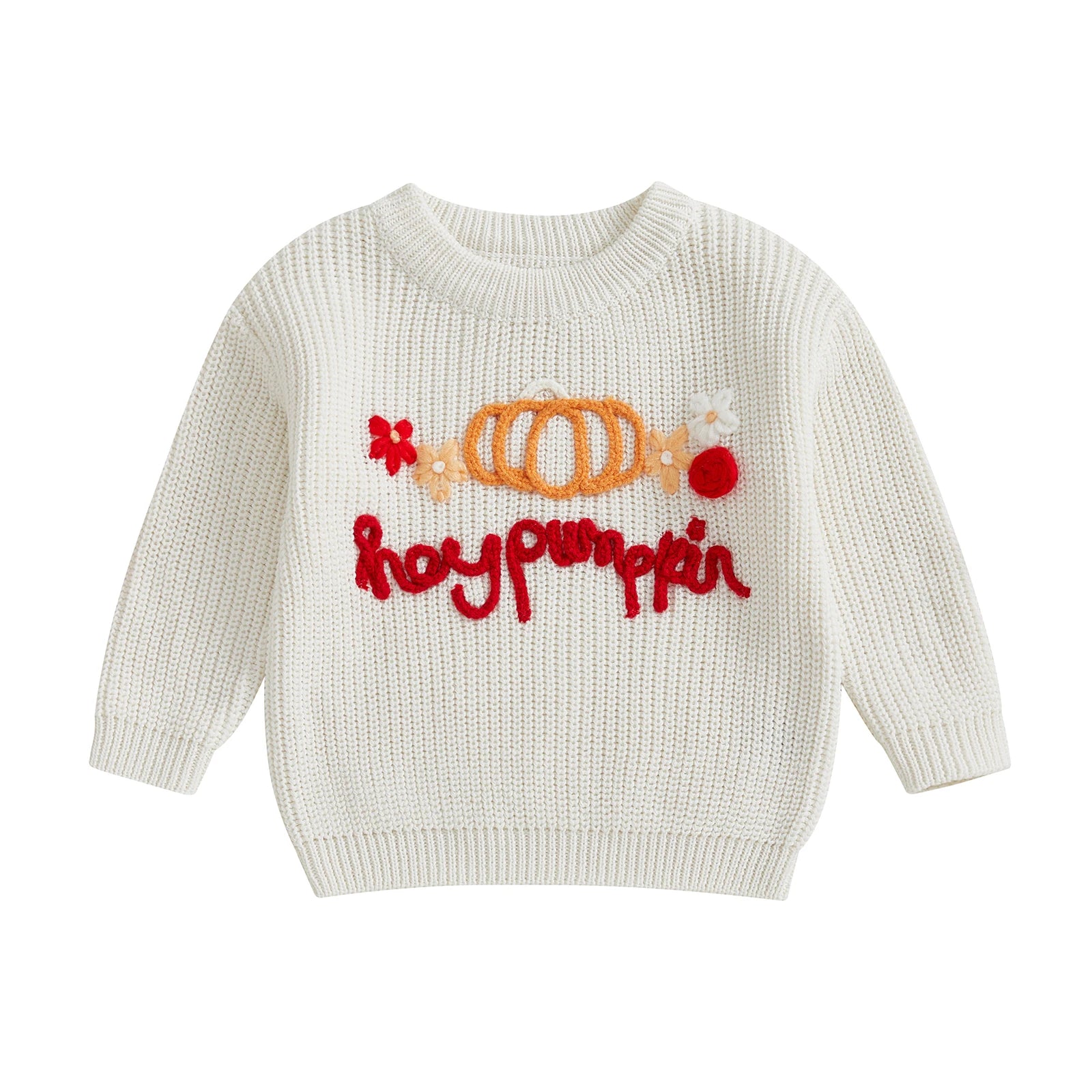 Get ready for festive fun with this delightful crew sweater! Bursting with charming embroidered pumpkins, flowers, and playful letters, it's the perfect way to celebrate the season in style. The soft, cozy long-sleeve design keeps little ones warm and comfy, while the whimsical details bring smiles to their faces. Whether it's Halloween parties or autumn adventures, this pullover top is a must-have for any kid's wardrobe!