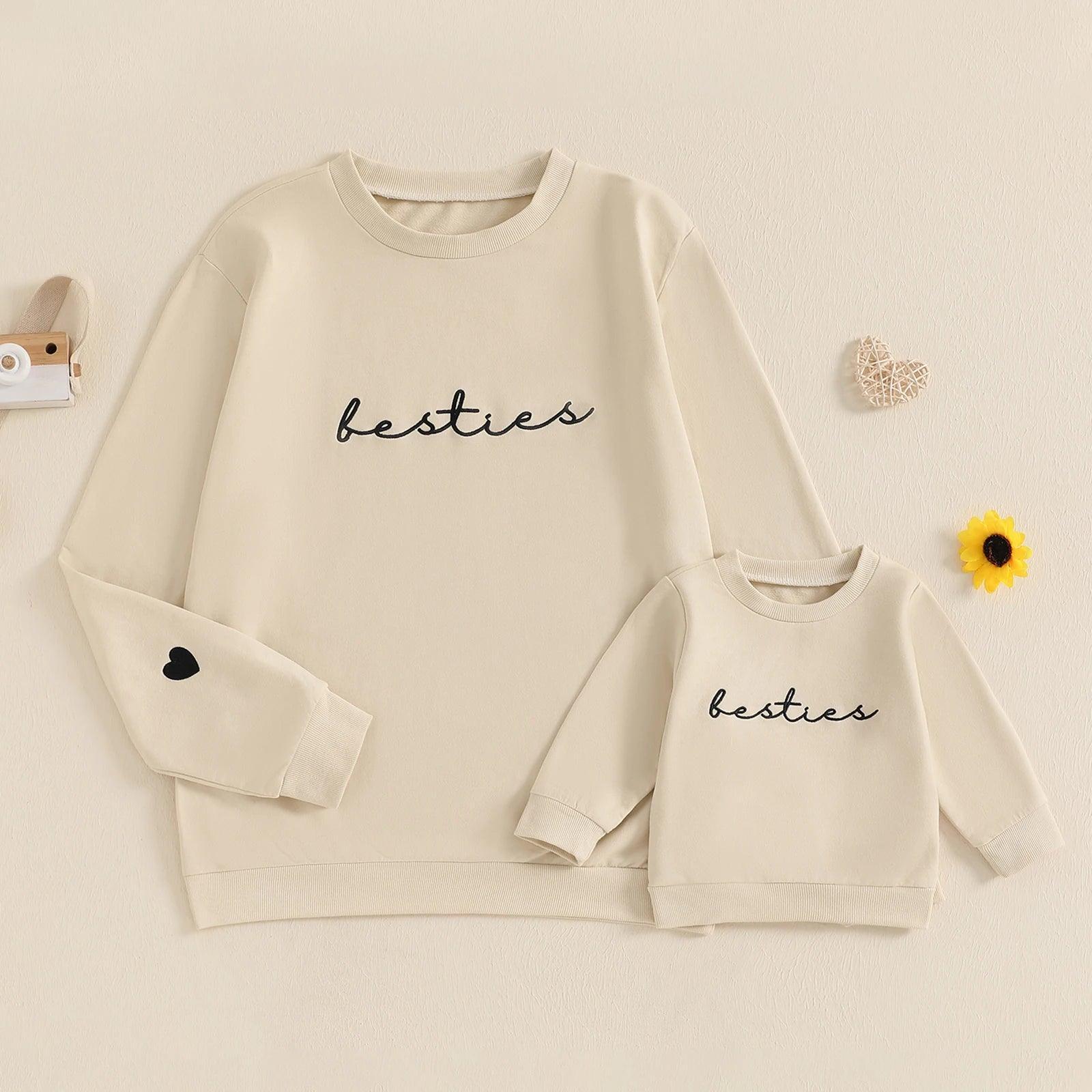 The Mama + Mini Bestie Matching Crew Sweatshirts are the perfect duo for mothers and little ones who love to match in comfort and style. These cozy sweatshirts feature playful lettering with a "Bestie" theme, ideal for casual outings or bonding moments. With soft fabric and a relaxed fit, they're perfect for chilly days. The crew neck design ensures a comfortable, cozy fit.