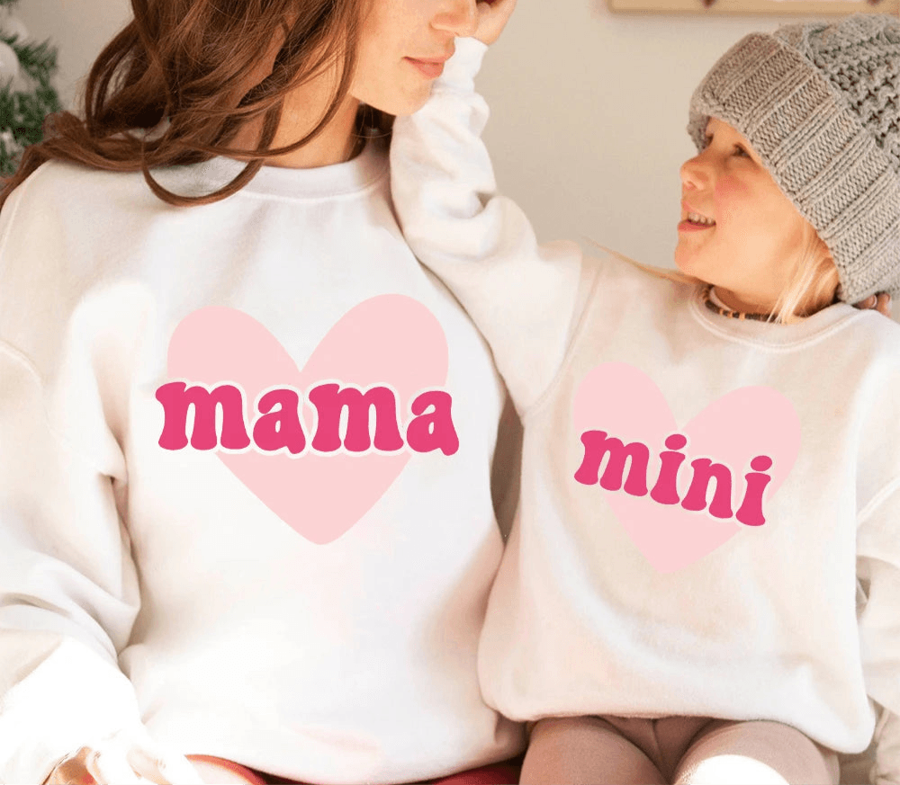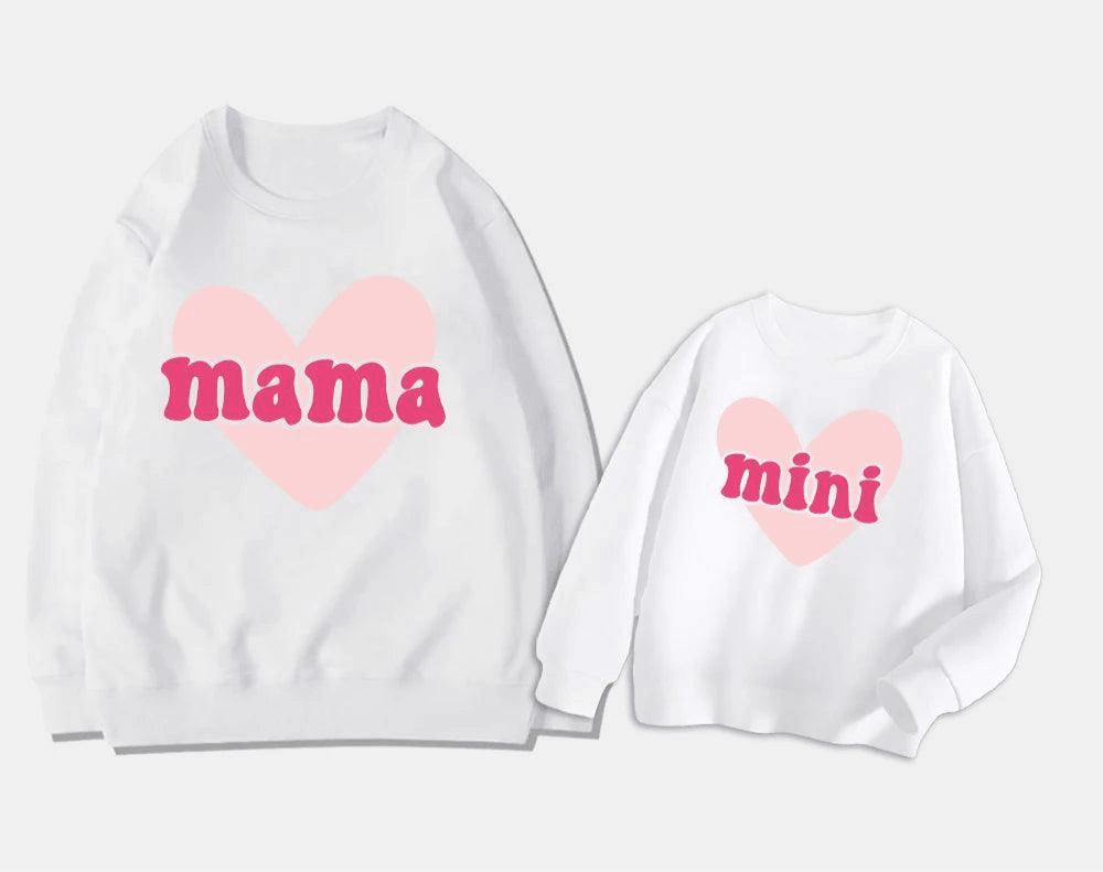 Celebrate Valentine's Day in matching style with the Mama + Mini Valentine Matching Crew Sweatshirts. Featuring a charming "Mama Mini" graphic, these sweatshirts are perfect for moms and their little ones to share the love. Made from soft, breathable fabric, they offer comfort while making a sweet fashion statement. Whether you're heading to a Valentine's Day celebration or enjoying cozy moments at home, these sweatshirts are a must-have for the season.