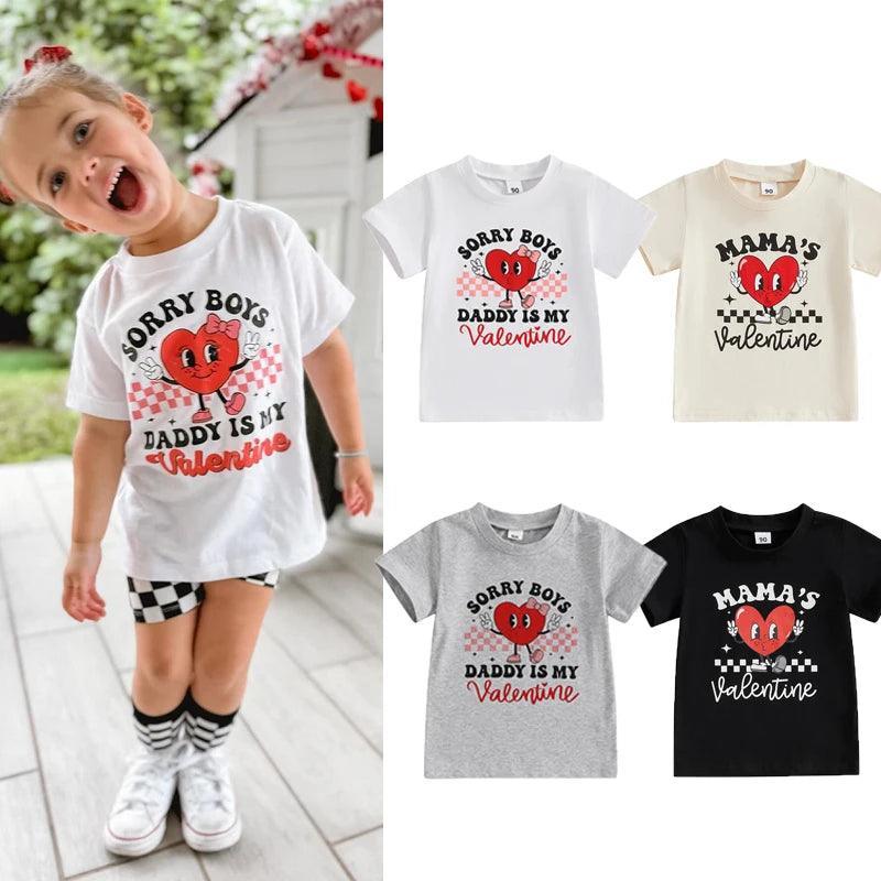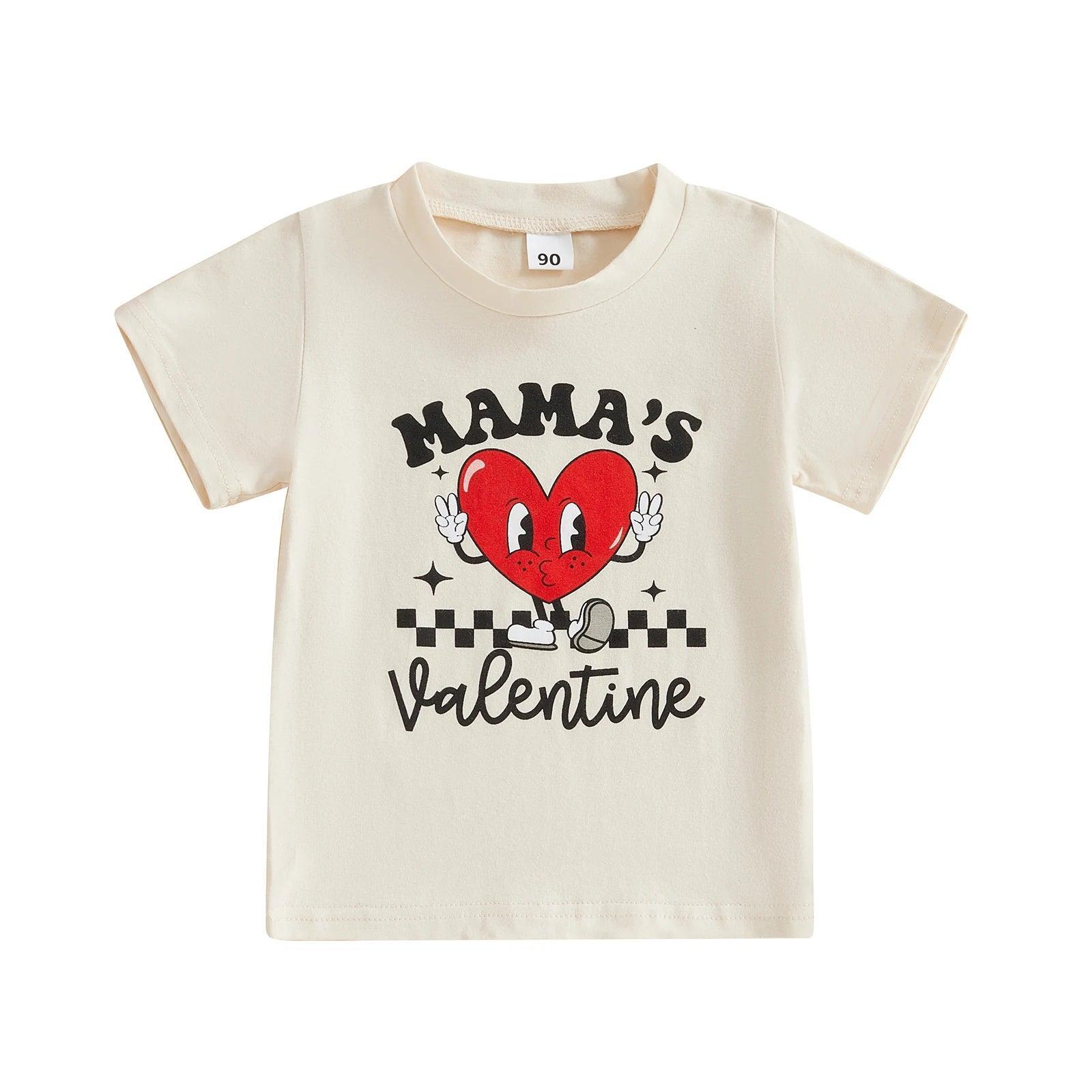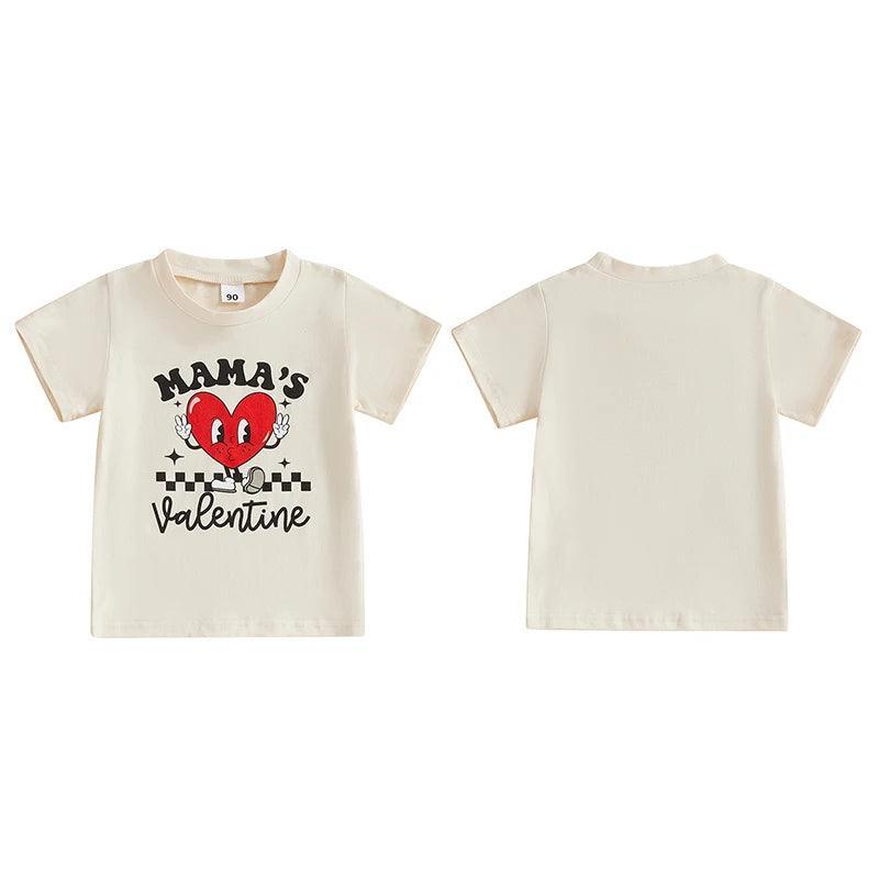 Celebrate Valentine's Day in style with this adorable Mama's Valentine Kids T-Shirt for little ones! Available in four vibrant colors, this tee features a fun letter print design that makes it a perfect addition to any kid’s wardrobe. Whether it’s for school, playtime, or a special celebration, this comfortable shirt is designed to keep your child feeling cozy and looking festive. Its classic round neck and short sleeves offer a relaxed fit, making it ideal for layering or wearing alone.