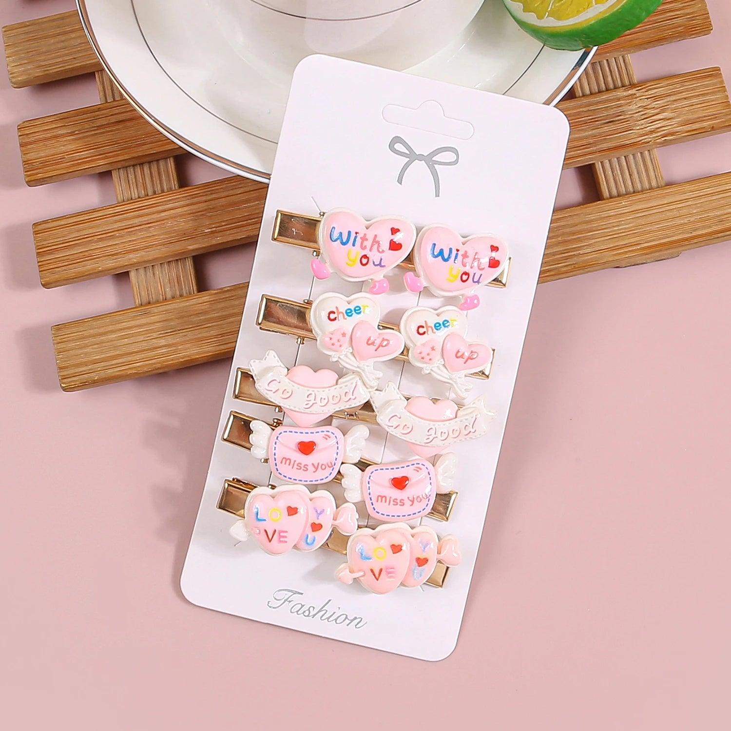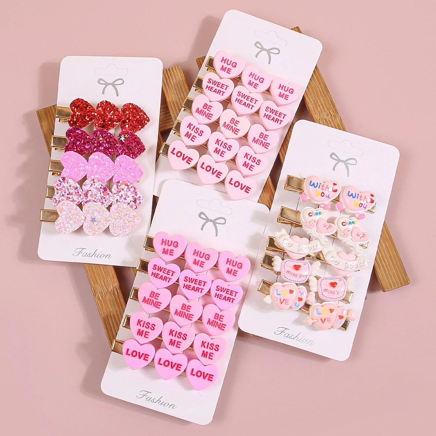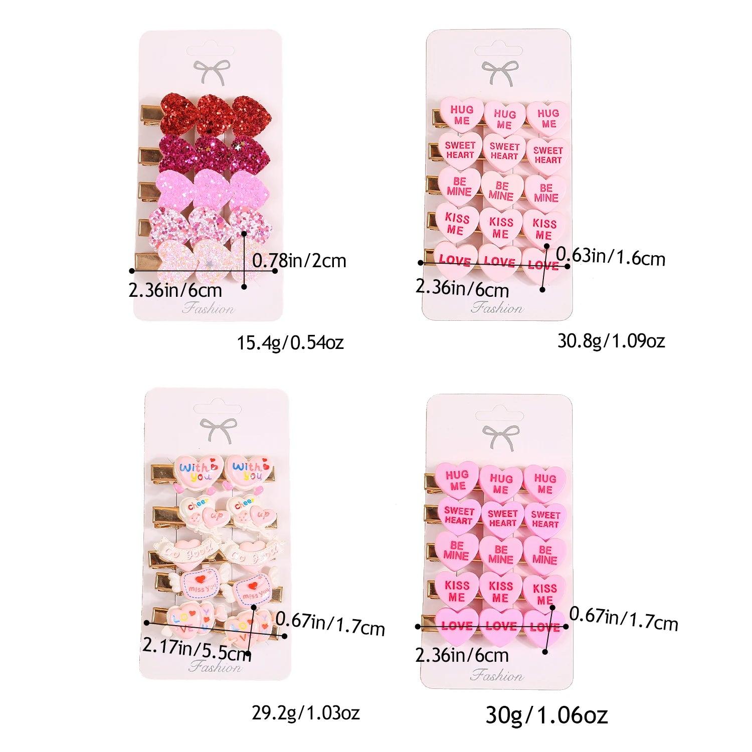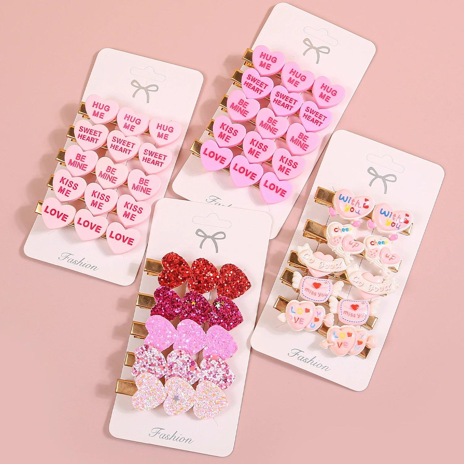 Get your little one ready for Valentine's Day with the Sweetheart Hair Clips. These adorable hairpins feature heart-shaped designs in vibrant pink and red colors, adding a playful and festive touch to any hairstyle. The set includes five clips, making them perfect for creating a variety of cute and creative looks. Whether she’s attending a party or simply celebrating the season, these hairpins are a must-have accessory. They are easy to use, lightweight, and comfortable, making them ideal for kids of all ages to wear throughout the day.