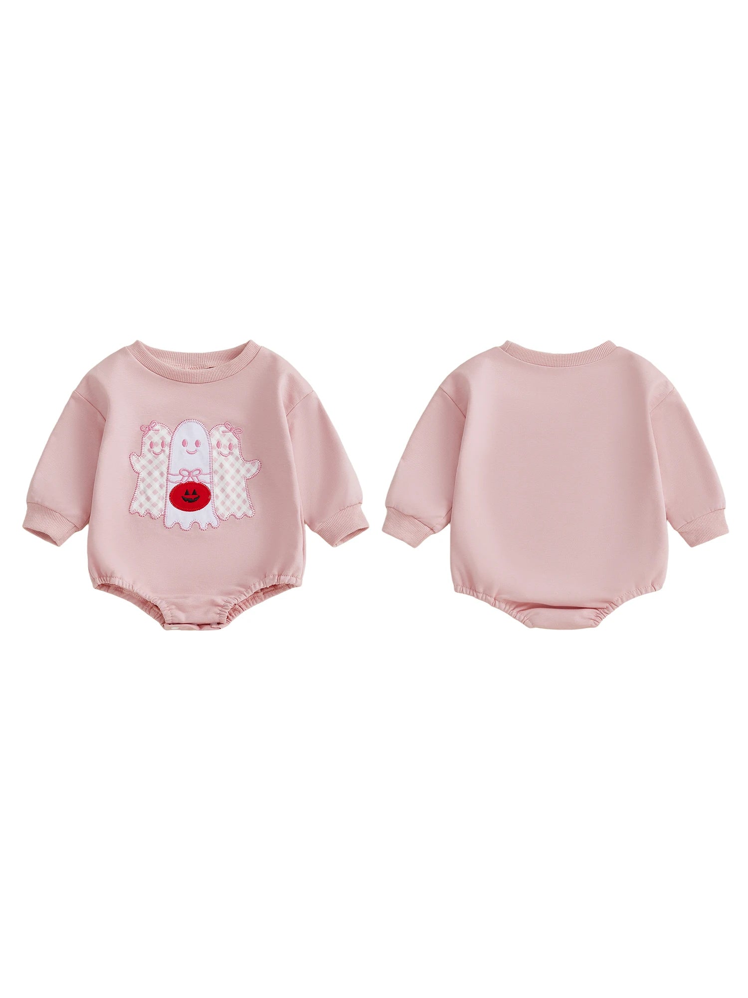 Introduce your little boo to the season in this charming ghostly crew onesie! Crafted for newborns and babies, this long-sleeve bodysuit features an adorable embroidered ghost with a sweet bow detail that adds extra cuteness. The soft, comfortable romper design makes diaper changes a breeze while keeping your tiny one cozy through fall and Halloween festivities. Perfect for photos, playdates, or celebrating the spooky season in style—because even the smallest members of the family deserve to join in on the Halloween fun!